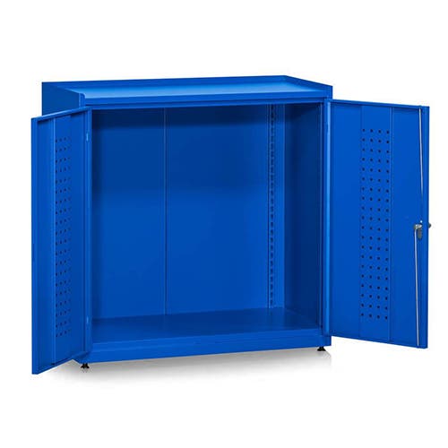 Verktygsskåpet PROFFS, ett kraftigt skåp som är helsvetsat för att uppnå högsta kvalitet och stabilitet. Ett skåp för effektiv förvaring av verktyg, smådelslådor, pärmar, kartonger eller kontorsmaterial.
