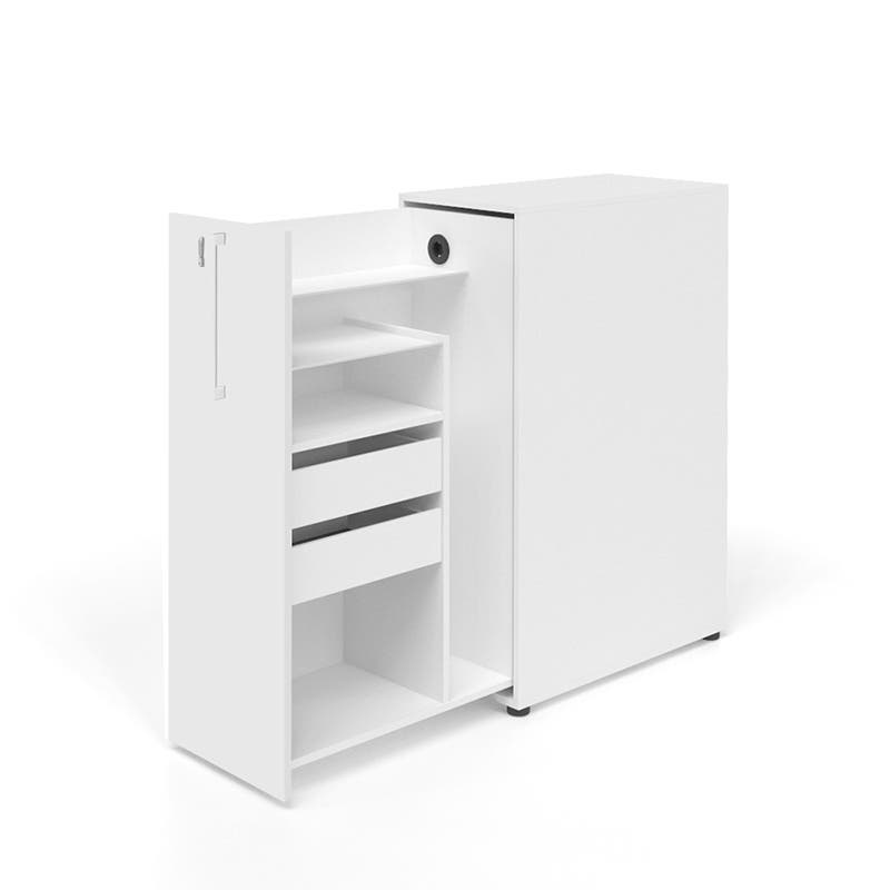 Towerskåp Sense, hyllplan, lådhurts, 220 V ladduttag, B420 x D800 x H1200 mm, Vit laminat, Vänster