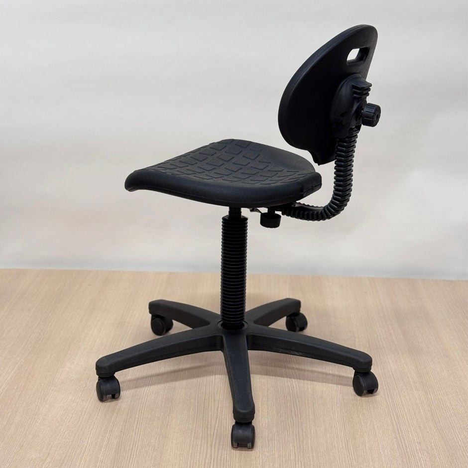 Arbetsstol Nargo med sits och rygg i PU-skum, fotkryss med hjul, justerbar sitthöjd 380 - 510 mm. Stolen har någon repa på fotstödet men är för övrigt i väldigt fint skick.