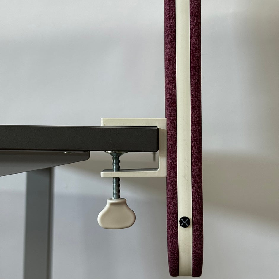 Lila bordsskärm i serien Edge. Vit kantlist. Levereras komplett med beslag. Som nyskick.