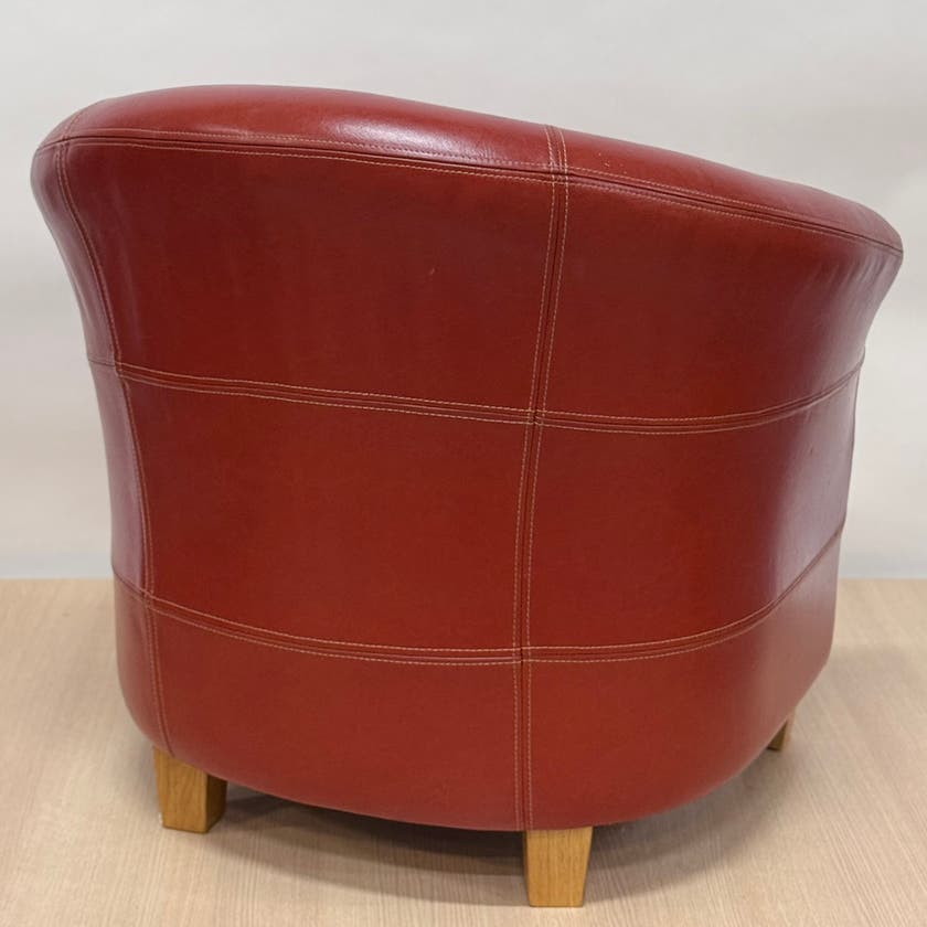 Paket med två clubfåtöljer i äkta skinn med effektfulla sömmar. L830 x D730 x H780 mm, sitthöjd 440 mm. I använt men gott skick.