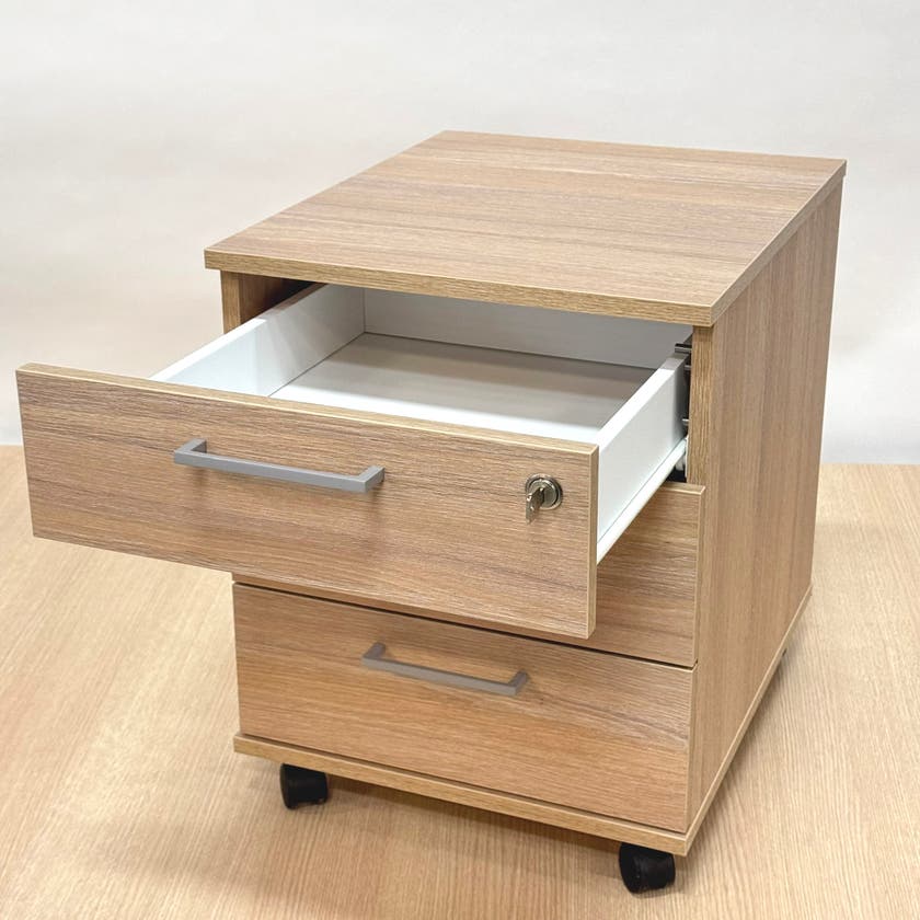 Paket med 2 st rullhurts Sense, 3 lådor, centrallås, ek laminat amber