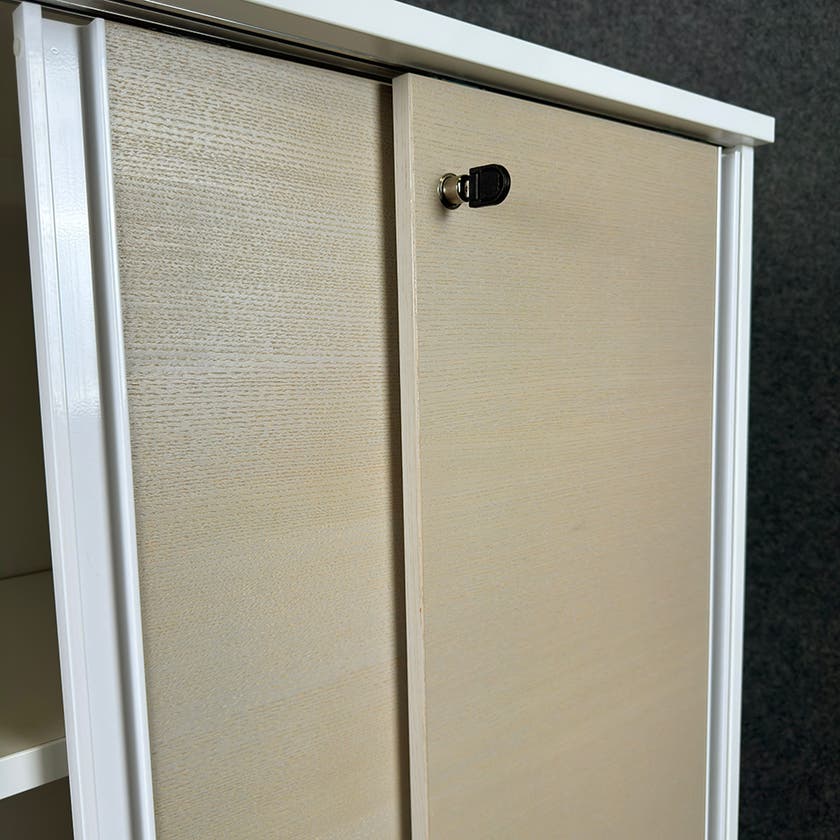Detta är en praktisk och snygg förvaring från Edsbyn som passar alla ytor tack vare sina skjutdörrar. Med sitt lås blir förvaringen en säker plats för viktiga tillbehör och saker. Mått: B: 800, H1295, D435 mm.