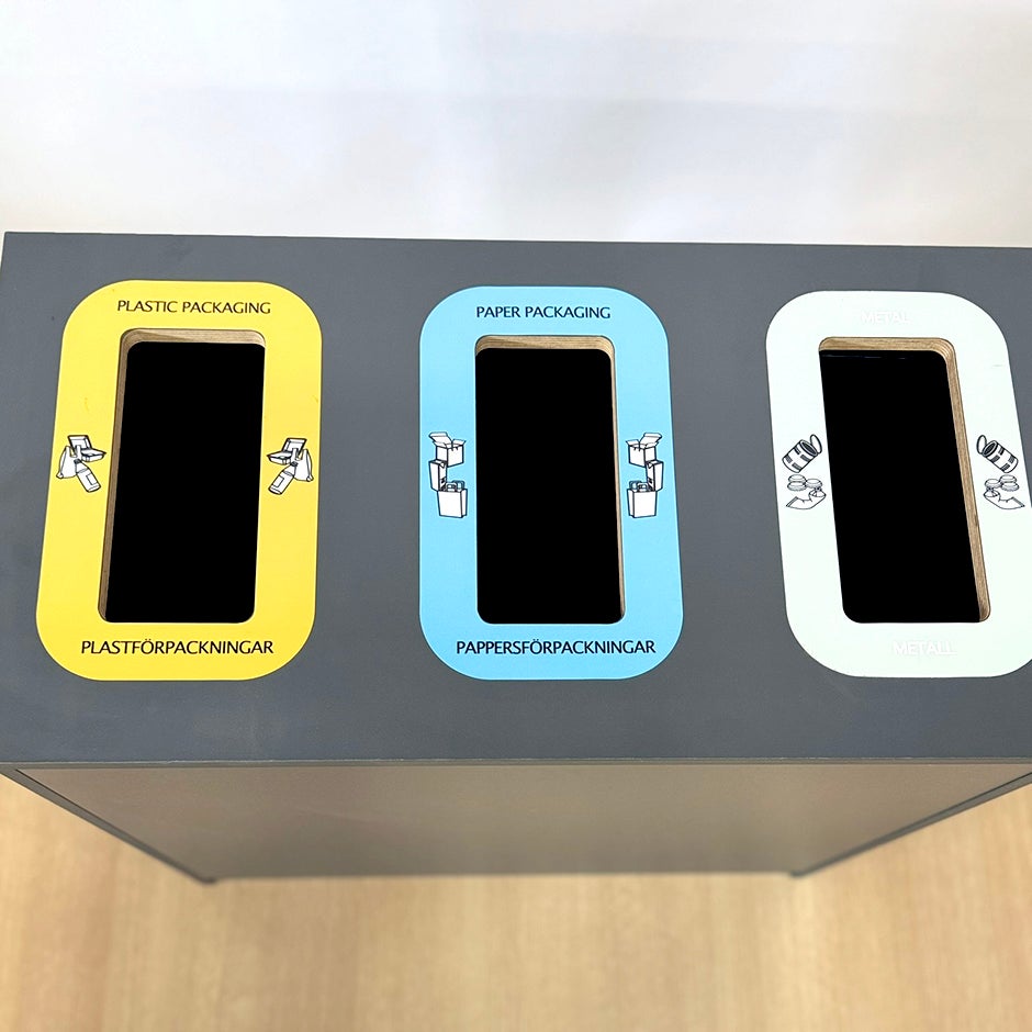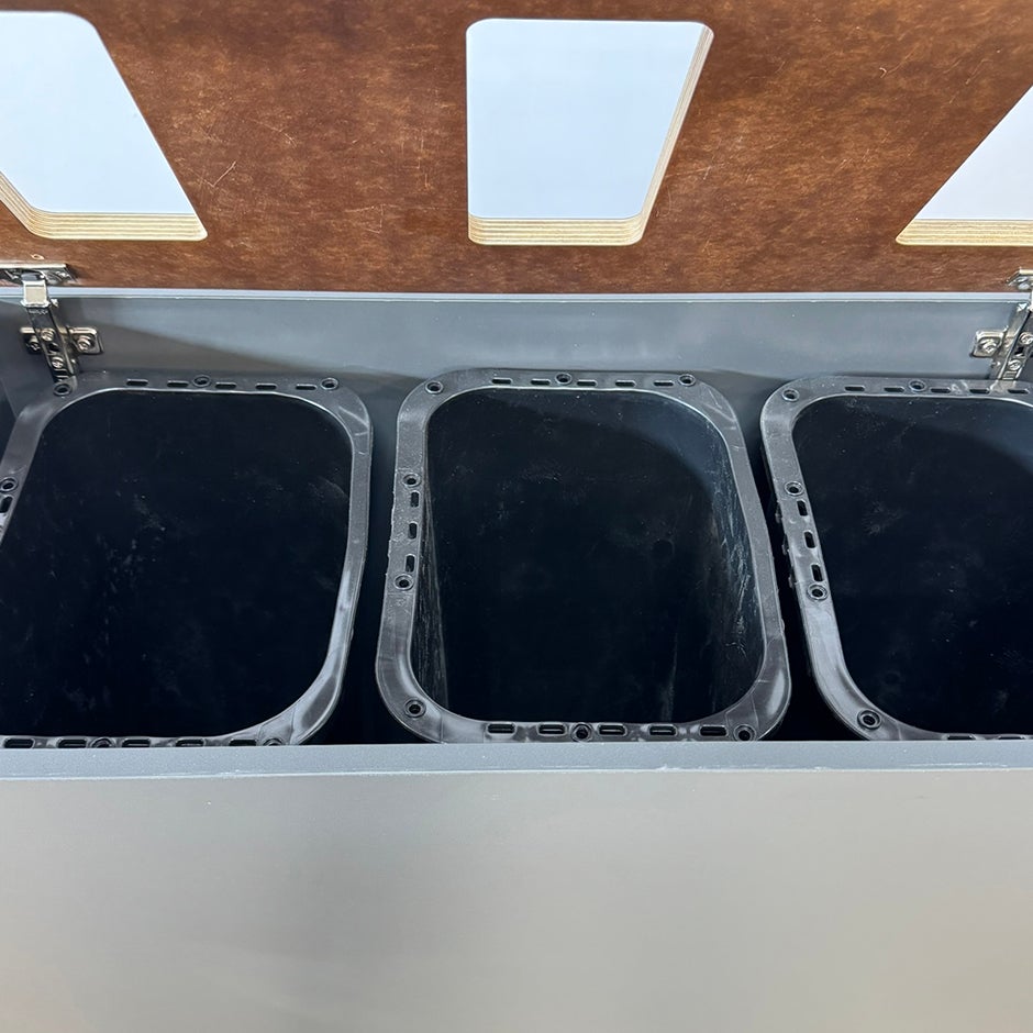 Källsorteringsskåp med 3 fack, inkl. kärl