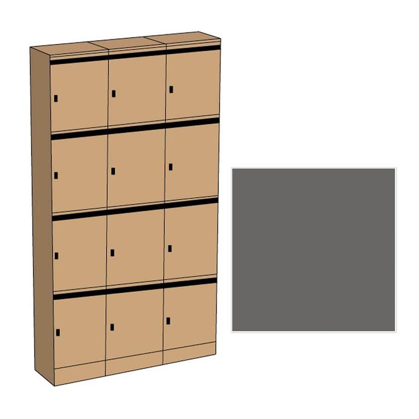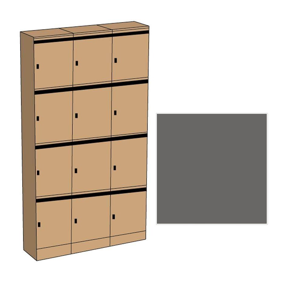 Förvaringsfack Nova 3x4 fack i en tålig och robust konstruktion för kontor, skolor och andra allmänna utrymmen. Tillverkat av 18 mm grafitgrå laminat. Dörrarna med postinkast är försedda med cylinderlås inkl. 2 nycklar.