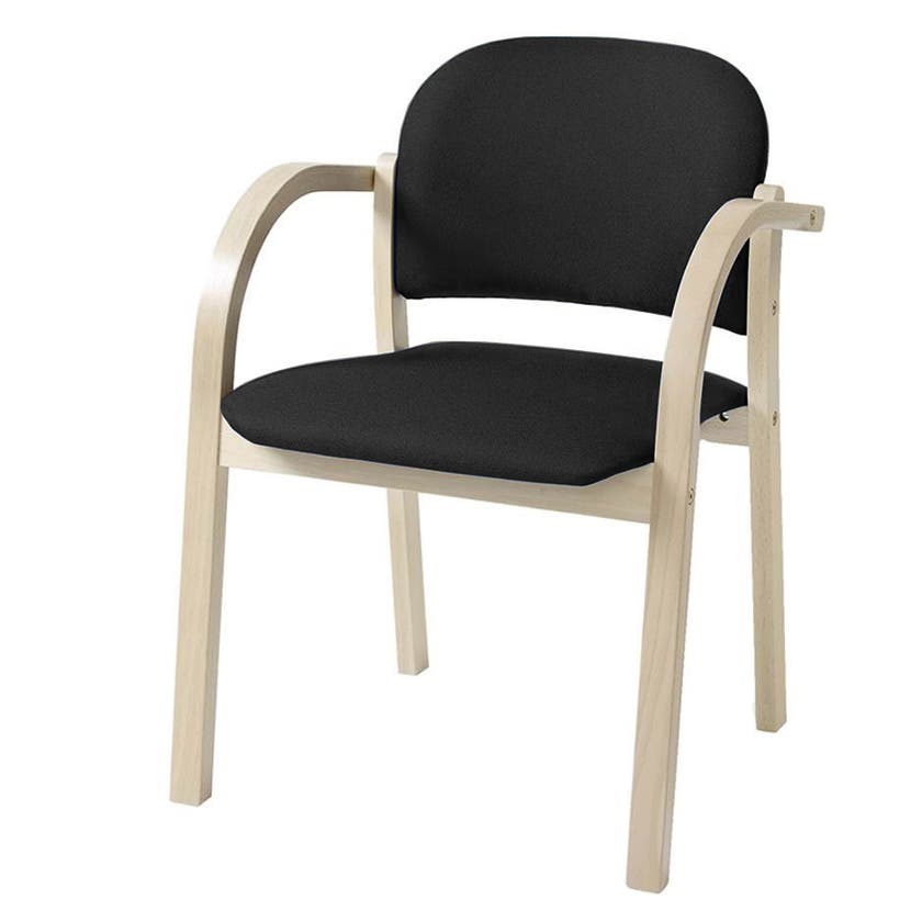 Karmstol Elva, klädd sits & rygg, staplingsbar, massiv lackad bok, svart tyg