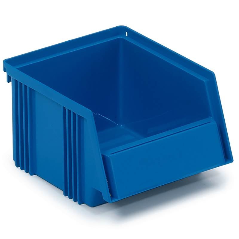 Lådans botten är korrugerad, vilket hindrar smådelar att glida undan och underlättar plockning. Den låga fronten gör att lådans innehåll blir synligt samt lätt och snabbt kan plockas.