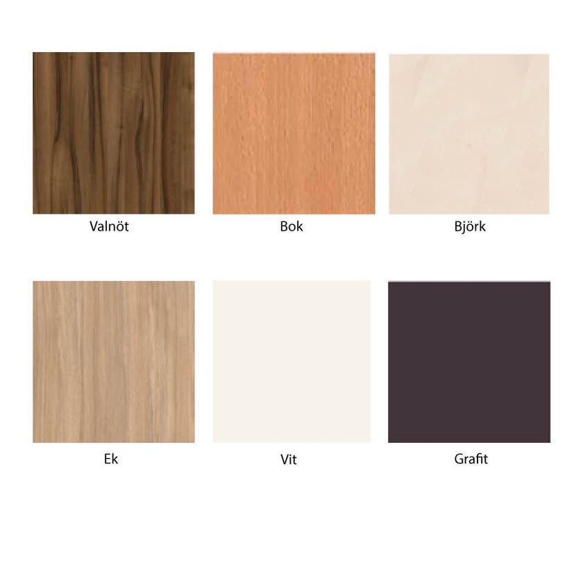 Skåpet levereras med handtag i silvergrå färg. Försett med ställfötter. Laminerad baksida för fristående placering. Levereras monterat.