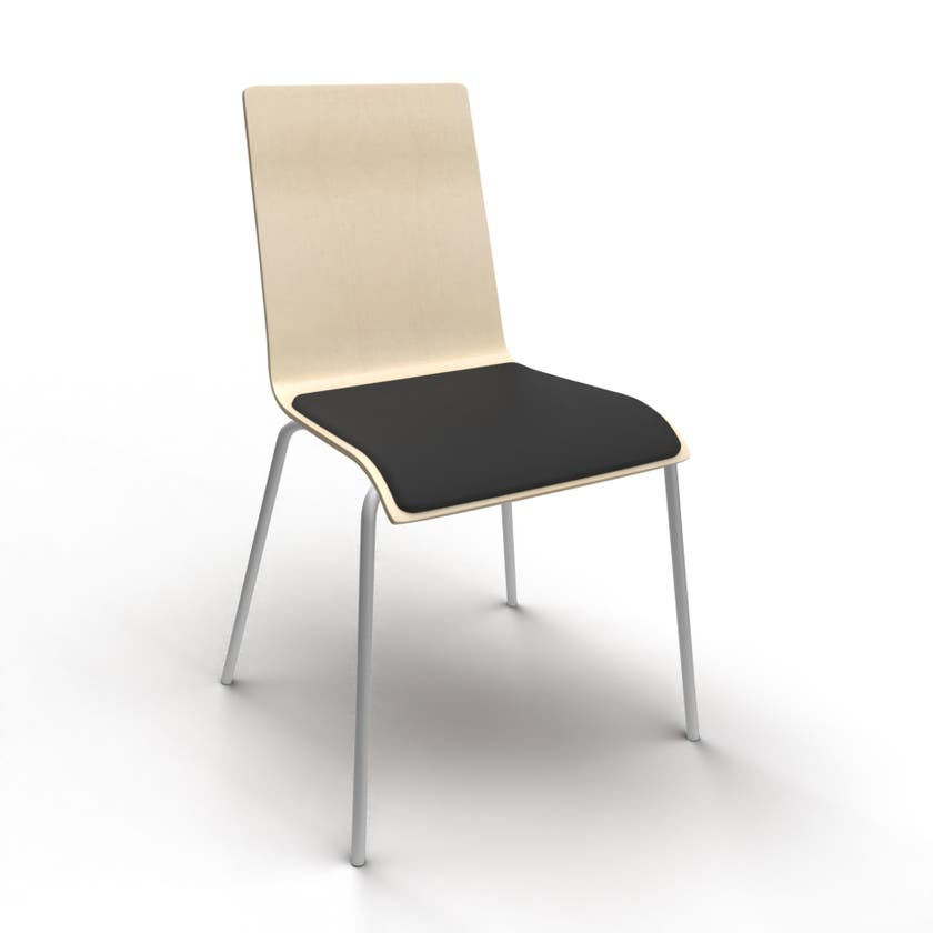 Stol Cafe VII, sittskal björklaminat, klädd sits svart tyg, grålackerat underrede