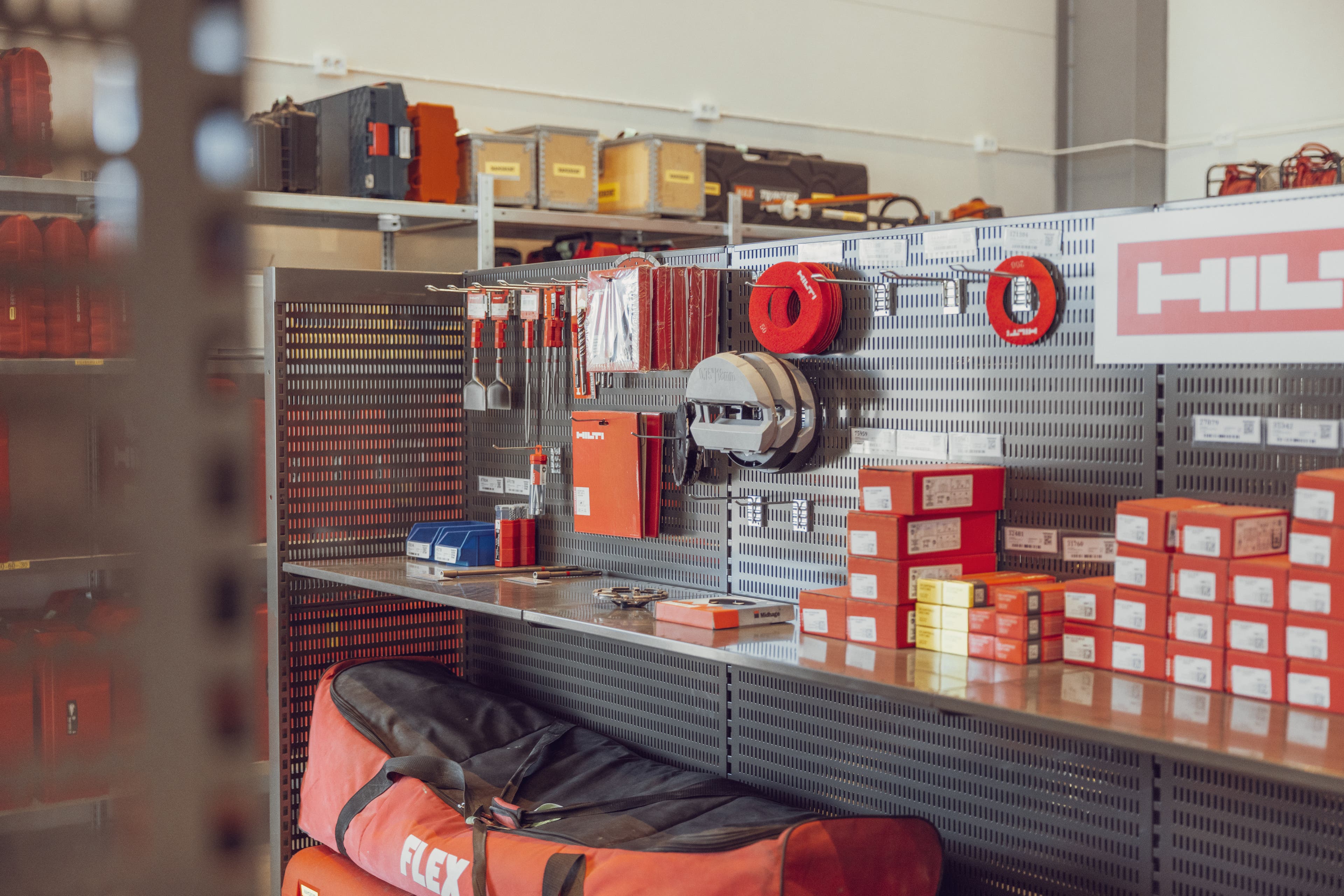 Inredningen till Ramirent omfattade betydligt mer än kontor. Förutom receptionsområdet levererades produkter till verkstad, lager, butik, lunchrum, omklädningsrum och flera kontors- och mötesytor. Butiksinredningen speciallackerades i en mörkgrå nyans för att smälta in med övrig miljö, och varje yta planlades med fokus på funktion, slittålighet och trivsel.