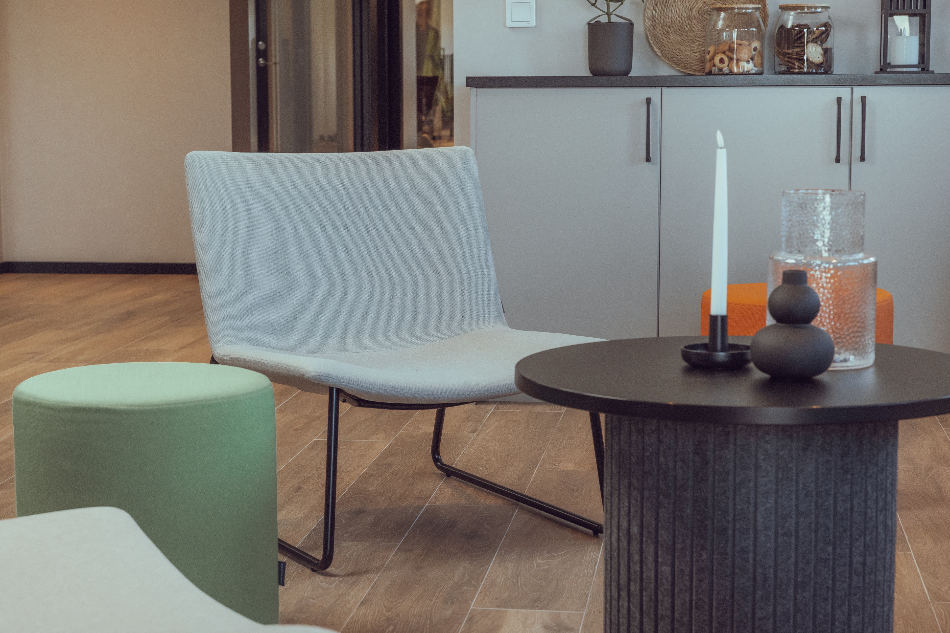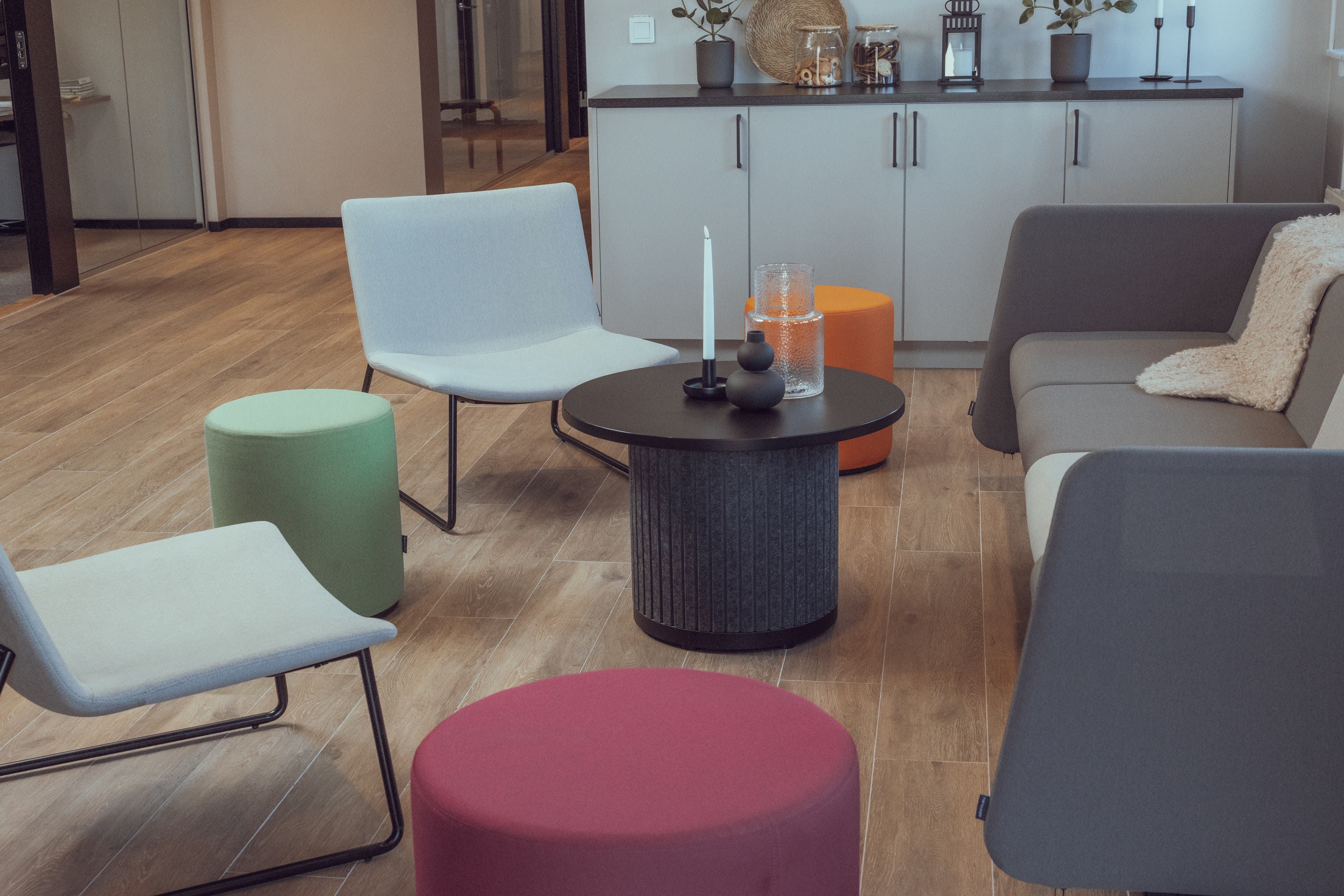 Inredningen som levererades till Smekab Citylife omfattade allt från skrivbord, bord, soffor, loungestolar, sittpuffar, barstolar, förvaring och konferensmöbler. Alla produkter kom från vårt standardsortiment – ett bra exempel på hur vi med rätt urval kan skapa lösningar som känns genomarbetade utan att kräva specialbeställningar. För att säkerställa en smidig process tog vi också hand om all logistik kring projektet. Leverans, inbärning, montering och bortforsling av emballage sköttes enligt plan – och på ett sätt som minimerade störningar i deras verksamhet.