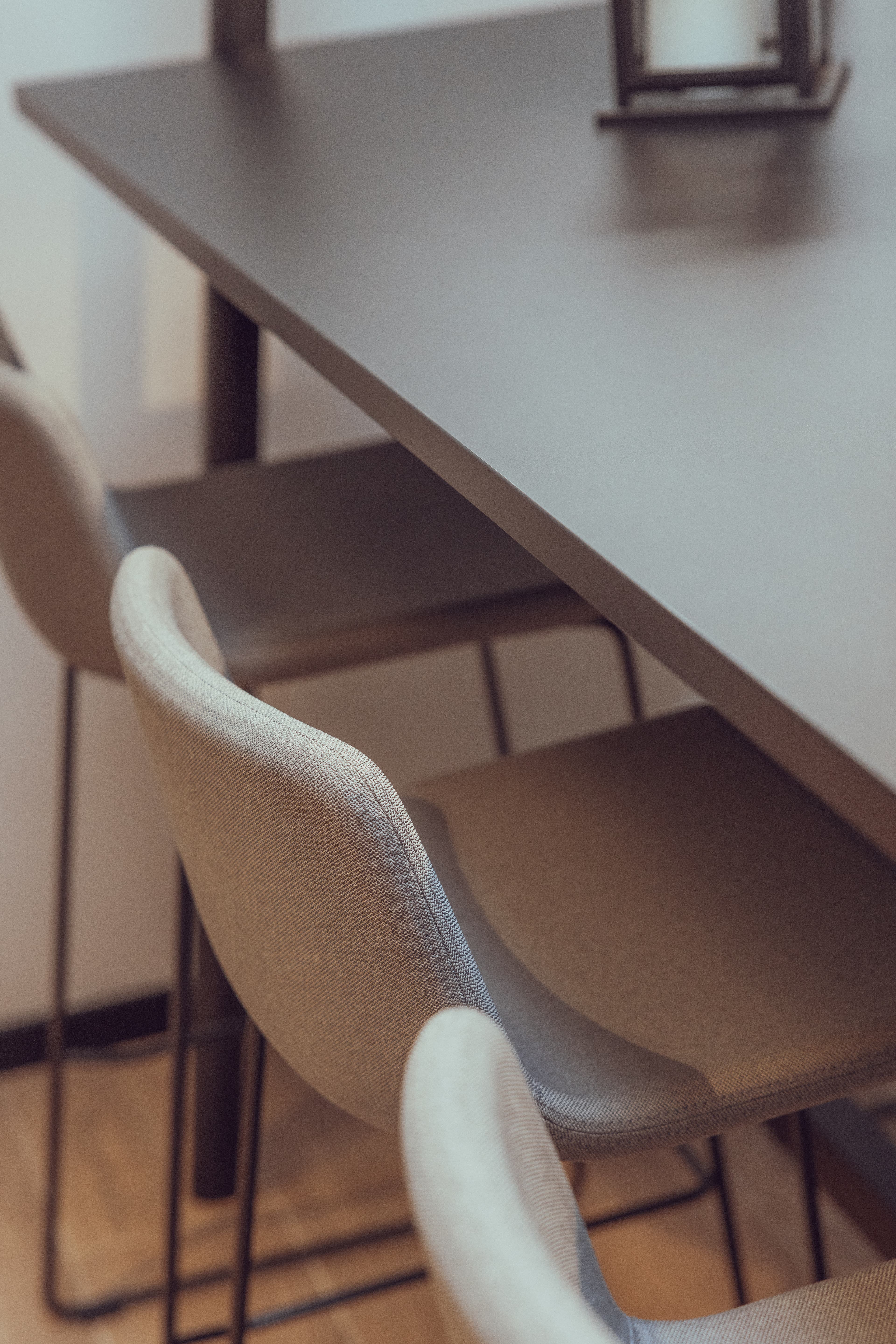 I nästa steg fokuserade vi på känslan i rummet – där färgsättningen spelade en avgörande roll. För att hitta rätt nyanser som skulle passa till den fasta inredningen i lokalerna tog vi fram fysiska färgprover och höll uppföljande möten. Det blev en dialog där vi tillsammans testade olika alternativ för att landa i en färgskala som kändes både modern och harmonisk. Vi kombinerade färgprover med visuella skisser och förslag för att säkerställa att varje val fungerade i helheten – både estetiskt och funktionellt.