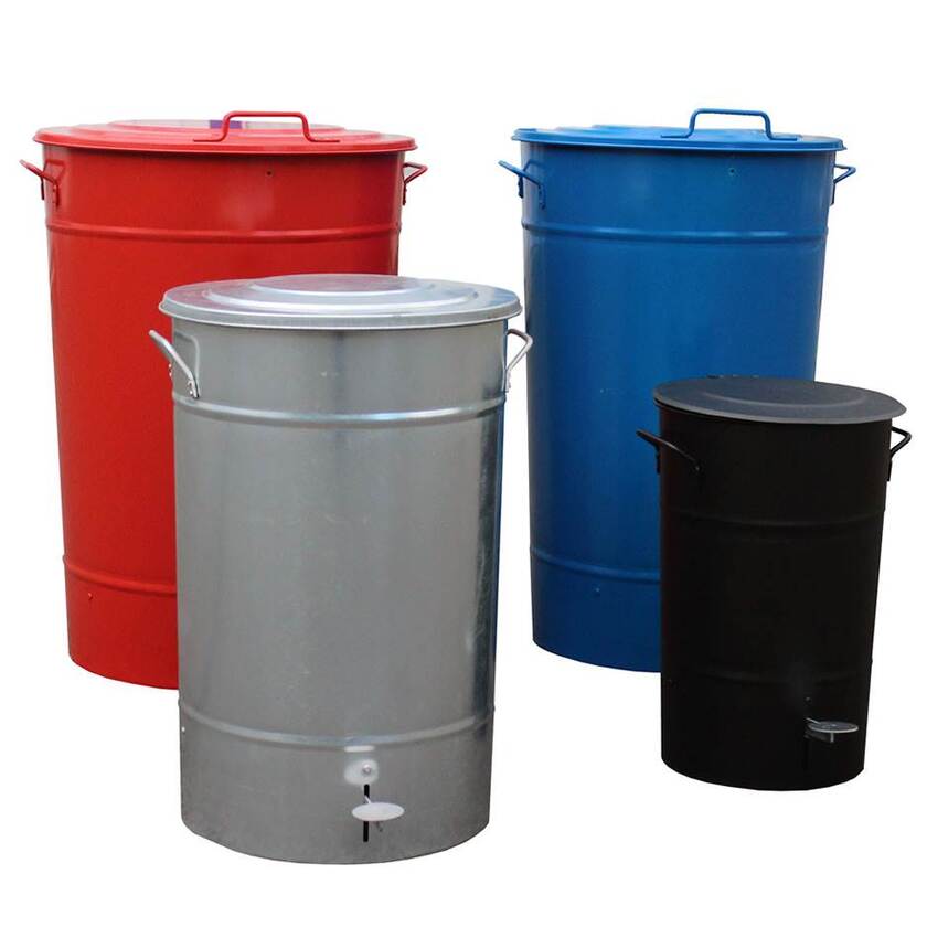 Sopkärl med bärhandtag för smidig hantering av allt från sopor till brandfarligt avfall. Lackerade i tre valbara färger, röd, blå och svart.