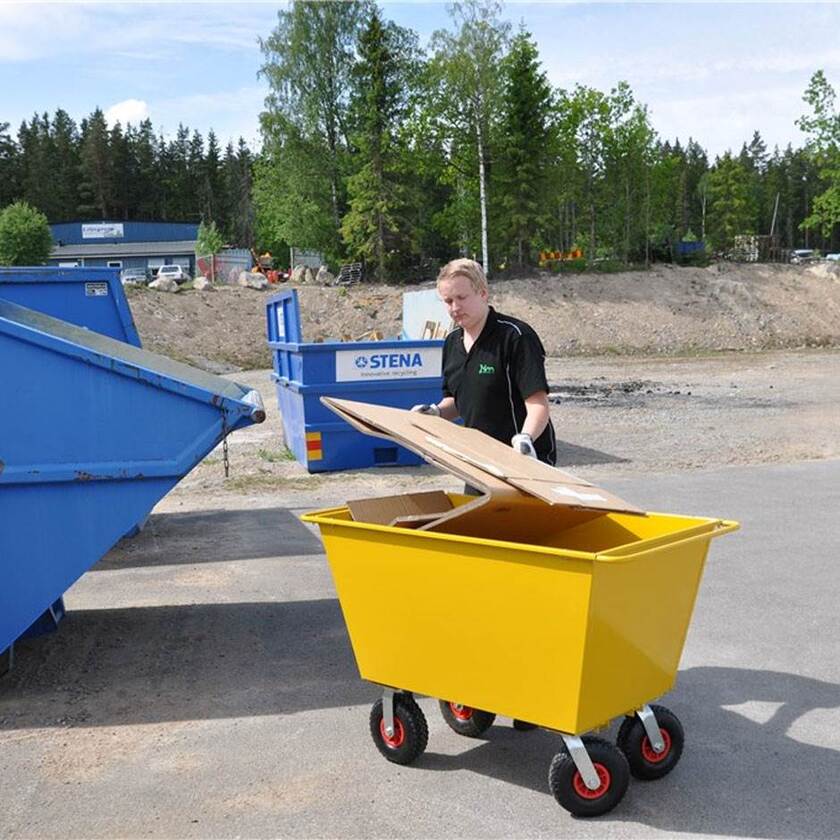 Avfallsvagn Alex är tillverkad i kraftig, pulverlackerad plåt. Det kraftiga utförandet gör avfallsvagnen perfekt för användning i tuffa miljöer, t.ex. på byggen och i produktionsmiljöer. Maximal kapacitet 400 kg. Avfallsvagn Alex fungerar dessutom utmärkt att använda som fodervagn i stallet och kan också brukas i trädgården för att samla gräsklipp och löv.