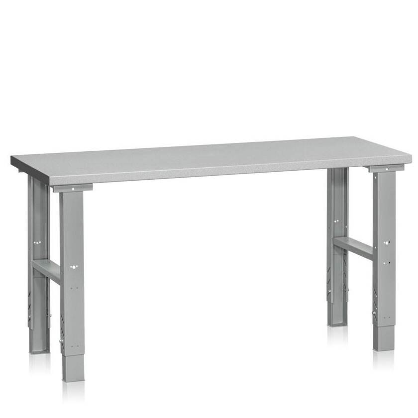 Arbetsbänk PROFFS, 1600 x 600 mm, ställbar höjd 740-1010 mm, Plåtbeklädd grå