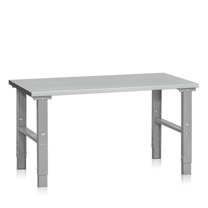 Arbetsbänk PROFFS, 1600 x 800 mm, ställbar höjd 740-1010 mm, Plåtbeklädd grå