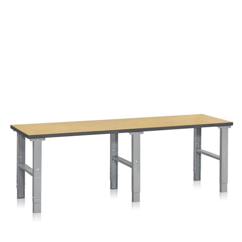 Arbetsbänk PROFFS, 2500 x 800 mm, ställbar höjd 740-1010 mm, oljehärdad board