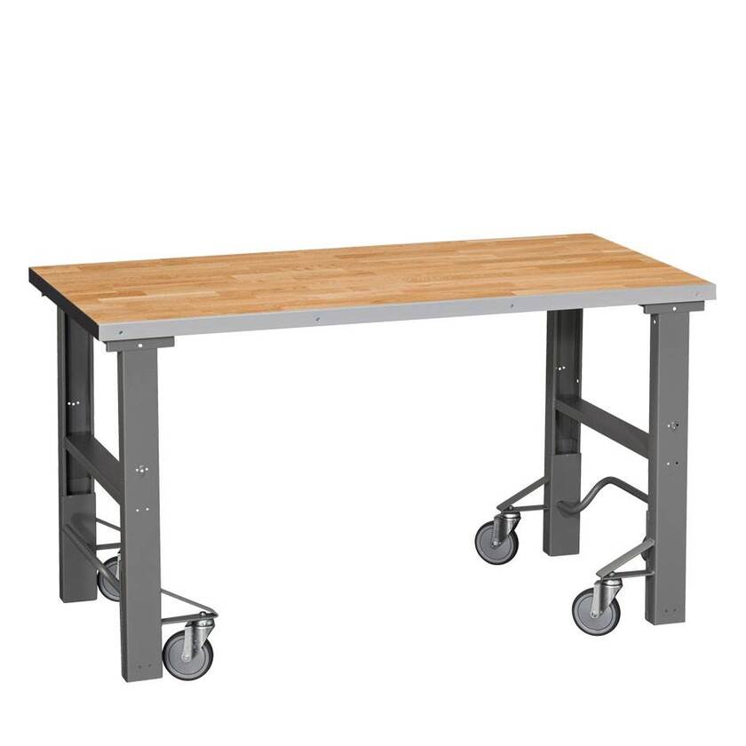 Arbetsbänk PROFFS med hjul, 1600 x 800 mm, ställbar höjd 745-1015 mm, Ekparkett