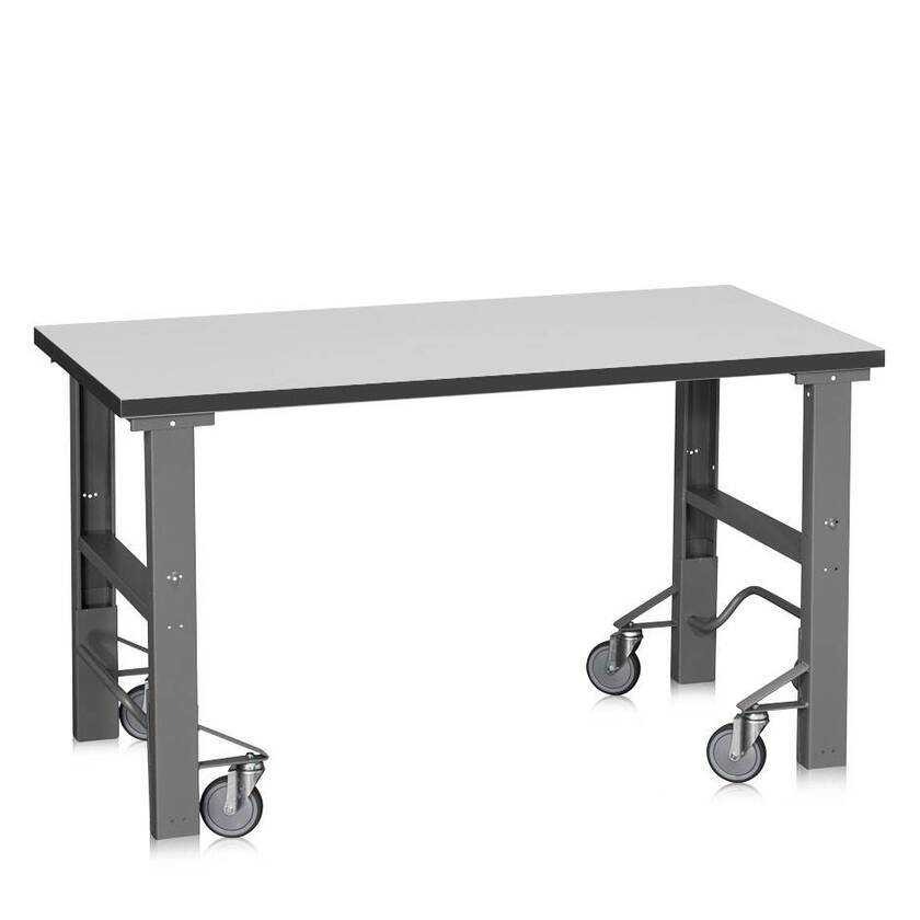 Arbetsbänk PROFFS med hjul, 1600 x 800 mm, ställbar höjd 745-1015 mm, Grå laminat