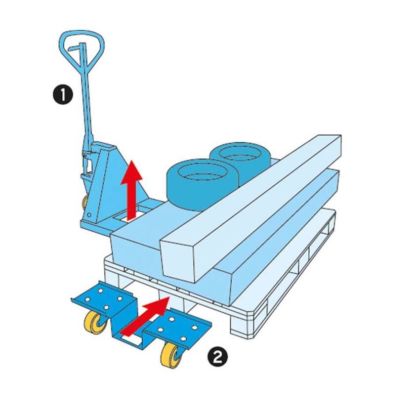 Pallrullare för europapallar, Ø100 mm hjul med neoprenbana. Maxlast på pallen 2000 kg.