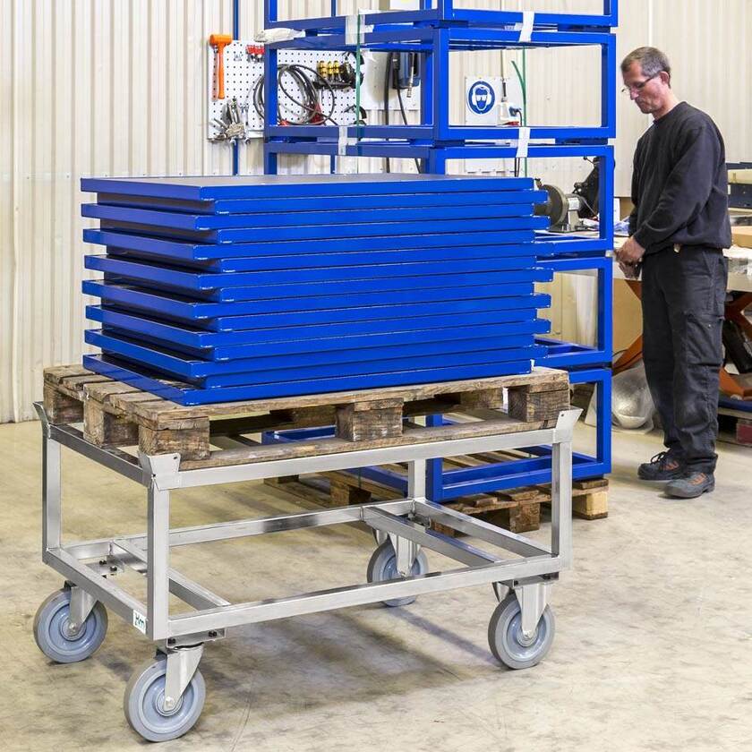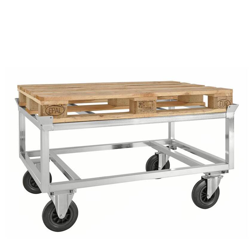 Pallvagn Axel är en helsvetsad och elförzinkad pallvagn med pallstyrning, anpassad till EUR-pall 1200 x 800 mm. Höjd till lastplan 650 mm. Utrustad med 2 fasta och 2 länkade massiva gummihjul Ø200 x 50 mm. Varav det ena hjulparet går att utrusta med broms som väljs via rullisten nedan. Kapacitet 800 kg.