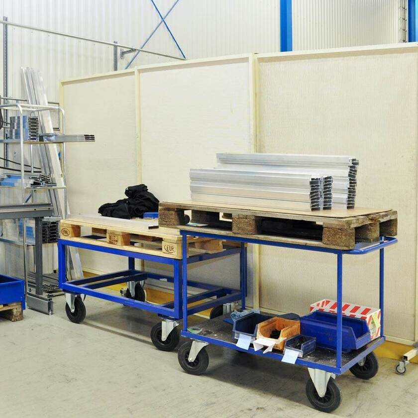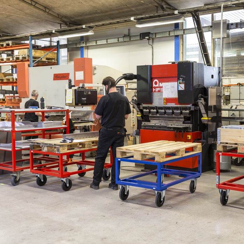 Pallvagn Axel, anpassad till pall 1200 x 1000 mm. Pallvagnen är utrustad med 2 fasta och 2 svängbara länkhjul av massiv gummi, Ø200 x 50 mm. Kapacitet 800 kg. Vikt 43,5 kg. Höjd 650 mm. Vill du utrusta din pallvagn med broms på ett av hjulparen så är det valbart i rullist nedan. Där väljer du även om du vill ha din pallvagn i färgerna rött eller blått.