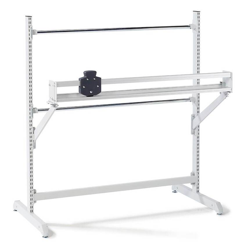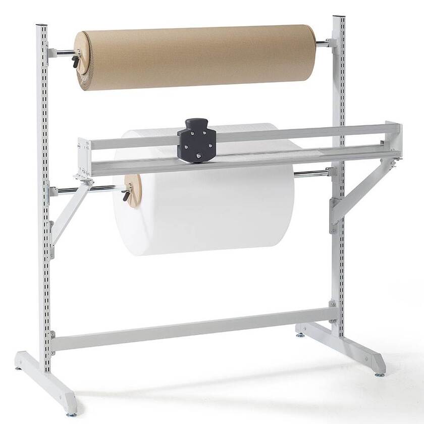 Högt rullställ för två rullar förpackningsmaterial, höjd 1500 mm. Rullarna går att justera i höjdled. Maximal rullbredd 1200 mm samt rulldiameter 800 mm. Axeldiameter 25 mm. Maximal belastning 40 kg/rulle.