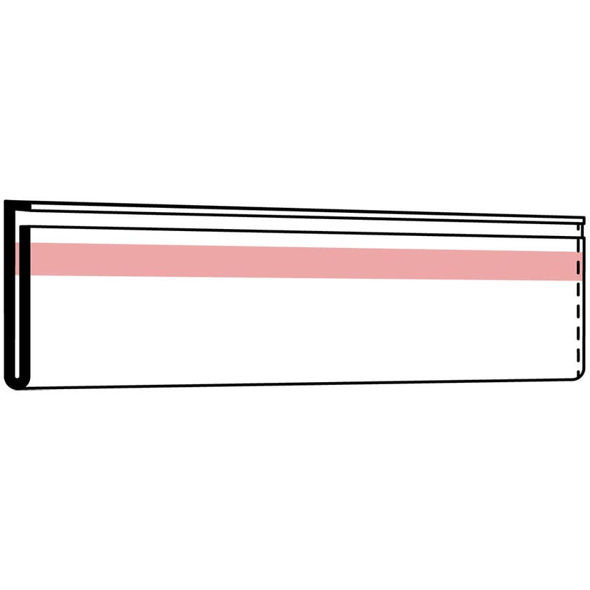 Etiketthållare, rak, fästs med tejp, 50-pack. Hållaren är skyddad vid öppningen för att öka livslängden på etiketten samt underlätta montering av etiketten.