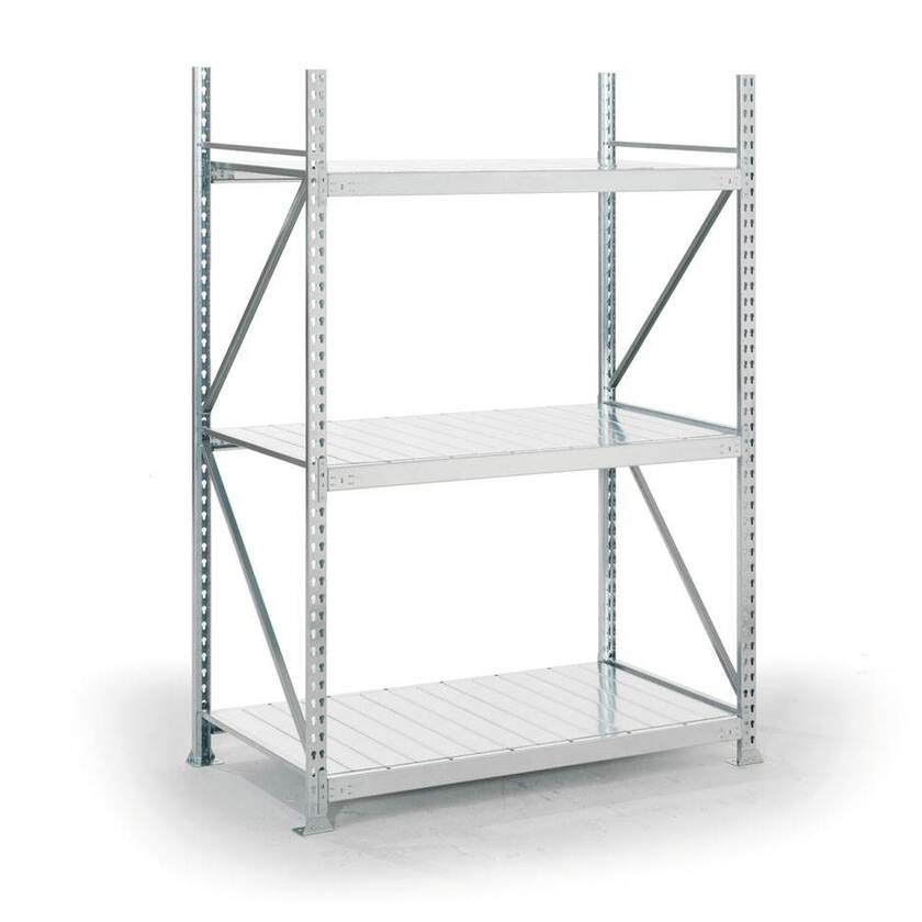 Startsektionen Meta Mini-Rack höjd 2200 mm består av två galvaniserade gavlar och tre hyllplan, där du kan välja mellan olika bredder och djup. Hyllplanen är försedda med tåliga plåtinlägg och levereras komplett med stegbalkar och förstärkningsskenor i galvaniserat utförande. Plåtinläggen ligger försänkta i stegbalken, vilket skyddar mot stötar när du lastar tungt gods. Hyllplanen är flyttbara i 50 mm intervall så du lätt kan anpassa din hylla. Sektionen går även att få med hyllplan av spånskiva.