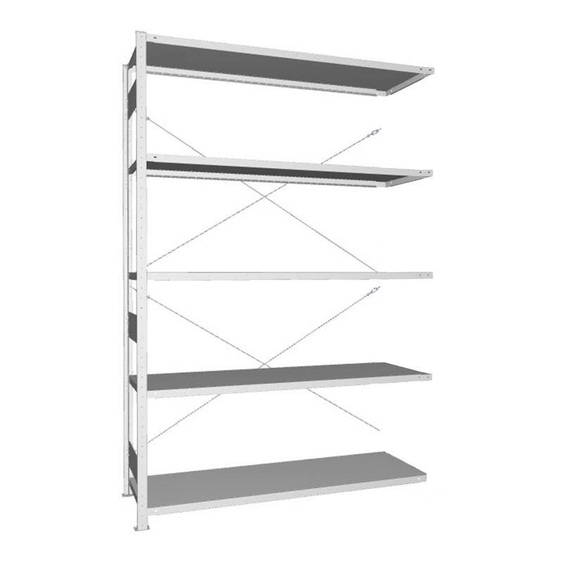 Påbyggnadssektionen har en gavel och kopplas efter en startsektion. Hyllplanen är flyttbara i 25 mm steg.