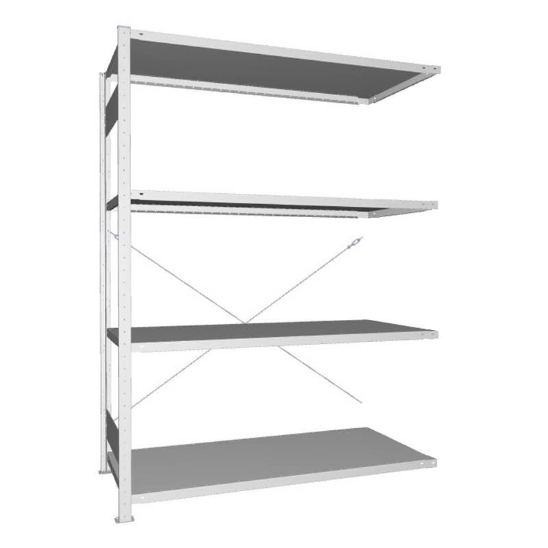 Påbyggnadssektionen har en gavel och kopplas efter en startsektion. Hyllplanen är flyttbara i 25 mm steg.