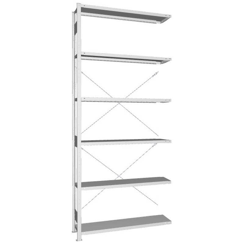 Påbyggnadssektionen har en gavel och kopplas efter en startsektion. Hyllplanen är flyttbara i 25 mm steg.