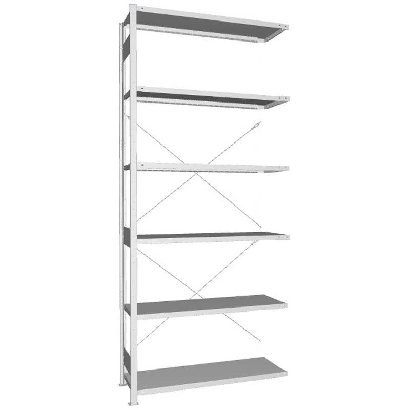 Påbyggnadssektionen har en gavel och kopplas efter en startsektion. Hyllplanen är flyttbara i 25 mm steg.