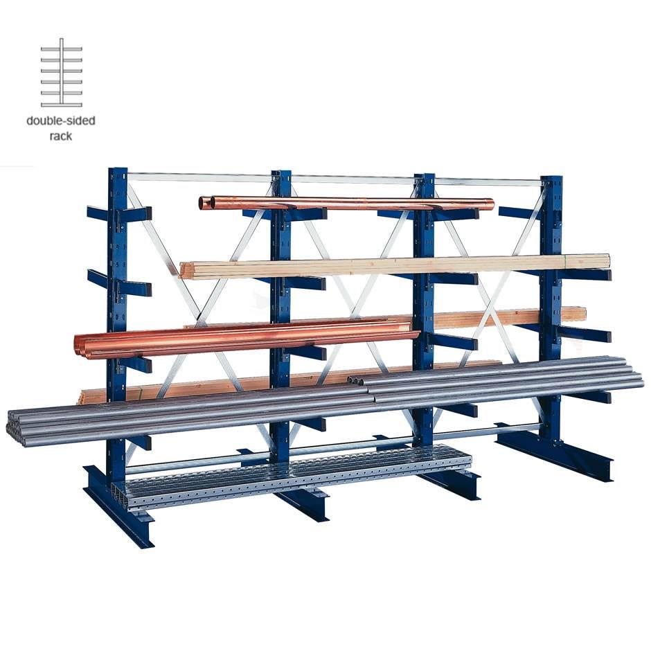 Meta Multistrong är grenstället som kombinerar maximal säkerhet med god ekonomi. Ett perfekt ställ för flexibel förvaring av medeltungt långgods. Sektionerna finns i enkel- och dubbelsidigt utförande. Levereras komplett med armar och stagsektioner. Börja med startsektion och bygg vidare med påbyggnadssektioner. Pelare i tre höjder, 2000 - 3000 mm. Armarna är justerbara i 50 mm intervall. Säkras med låsskruv och kan enkelt flyttas vid behov. Armens dimension 70 x 30 mm. Pelare och armar är lackerade i blå färg, RAL 5010. Stagsektioner och ändstopp i galvaniserat utförande. Grenställ Meta Multistrong finns i flera utföranden och med olika tillbehör.