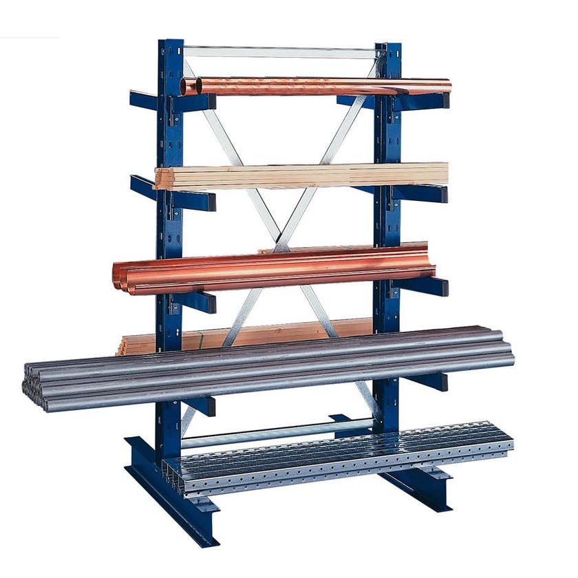 Meta Multistrong är grenstället som kombinerar maximal säkerhet med god ekonomi. Ett perfekt ställ för flexibel förvaring av medeltungt långgods. Sektionerna finns i enkel- och dubbelsidigt utförande. Levereras komplett med armar och stagsektioner. Börja med startsektion och bygg vidare med påbyggnadssektioner. Pelare i tre höjder, 2000 - 3000 mm. Armarna är justerbara i 50 mm intervall. Säkras med låsskruv och kan enkelt flyttas vid behov. Armens dimension 70 x 30 mm. Pelare och armar är lackerade i blå färg, RAL 5010. Stagsektioner och ändstopp i galvaniserat utförande. Grenställ Meta Multistrong finns i flera utföranden och med olika tillbehör.