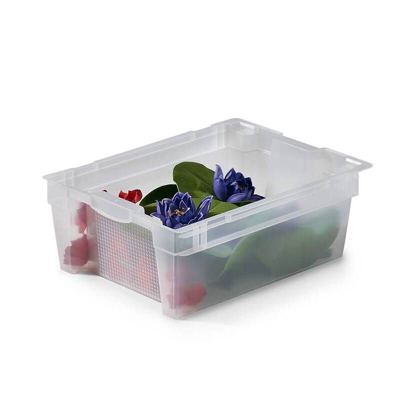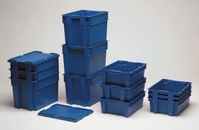 Staplingsbara lättviktsbackar som kan staplas på varandra eller, genom att snurra backen ett halvt varv, travas i varandra. Genom att trava backarna i varandra sparas 72% av volymen. Som tillbehör finns lock, som även ger staplingsmöjlighet. Backarna är anpassade för standardpallar och har yttermåttet L394 x B294 x H138 mm, samt ett innermått på L311 x B:245 x H126 mm. Vikt 600 g. Välj mellan blå eller transparent back.