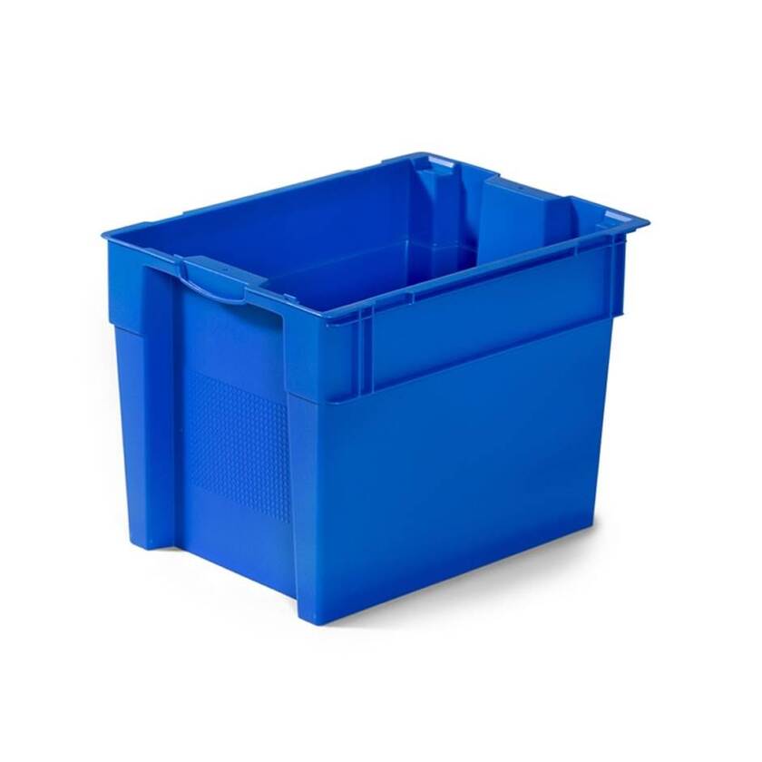 Staplingsbara lättviktsbackar som kan staplas på varandra eller, genom att snurra backen ett halvt varv, travas i varandra. Genom att trava backarna i varandra sparas 72% av volymen. Som tillbehör finns lock, som även ger staplingsmöjlighet. Backarna är anpassade för standardpallar och har yttermåttet L394 x B294 x H285 mm, samt ett innermått på L311 x B:245 x H273 mm. Vikt 970 g. Välj mellan blå eller transparent back.