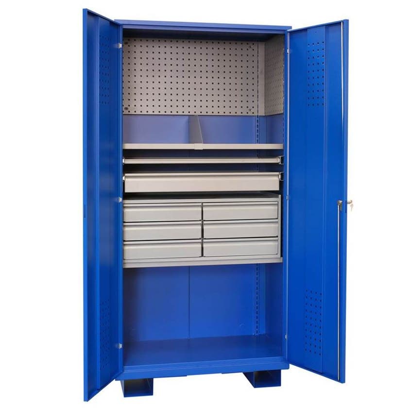 Verktygsskåpet PROFFS är ett kraftigt skåp som är helsvetsat för att uppnå högsta kvalitet och stabilitet. Ett skåp som är anpassat för miljöer såsom lager och verkstäder där tyngre verktyg och maskiner kan förvaras men det lämpar sig även bra som kontors- och arkivskåp.
