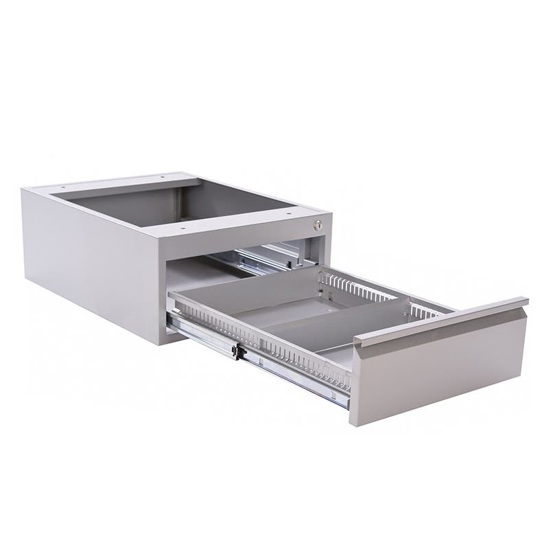 Kraftig bänklåda med lås och kullagrad glidskena som är utdragbar 100%. Maxlast 40 kg. Lådhöjd 135 mm.