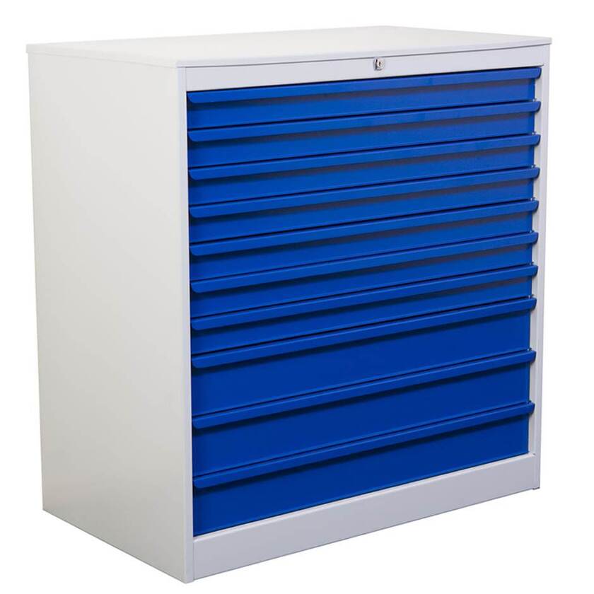 Verkstadshurts med 10 lådor (7+3 st) 1051x1000x590 mm, max 75 kg/låda, c-lås