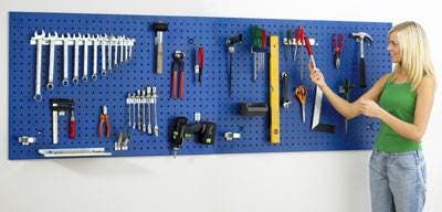 Dubbelkrok, längd 64 mm, tjocklek 5 mm, bredd 7 mm, för verktygspanel. Hakas i plåtens perforering och låses med en spetsig stoppskruv, som levereras iskruvad. Används för upphängning av hammare och liknande små handverktyg.