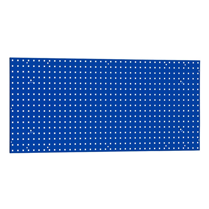 Verktygstavla 1950 x 900 mm, 9 mm fyrkantshål, hålavstånd c/c 38 mm. Skruvas direkt i väggen genom något av fyrkantshålen. Som tillbehör finns en mängd olika krokar, sök på Verktygskrokar.