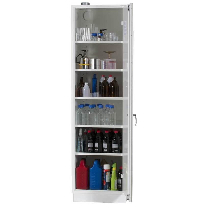 Brandisolerat kemikalieskåp som är testat av SP Sveriges Provnings- och Forskningsinstitut med avseende på ventlilationen. Även brandtestat med avseende på utvändig brand enligt SP metod 2369, där skåpet uppfyller krav enligt klass 1.