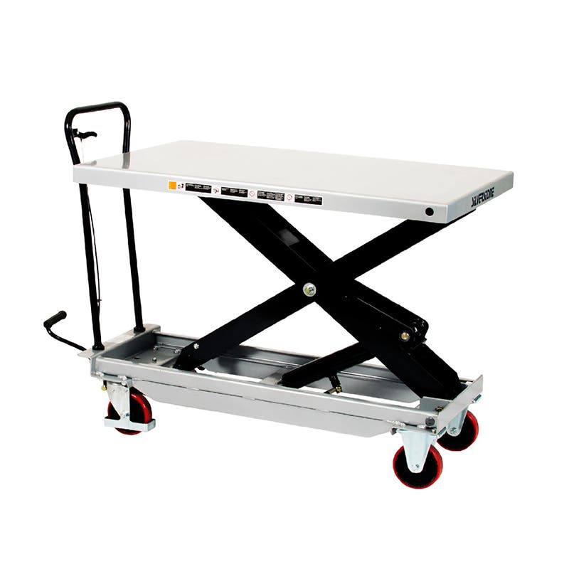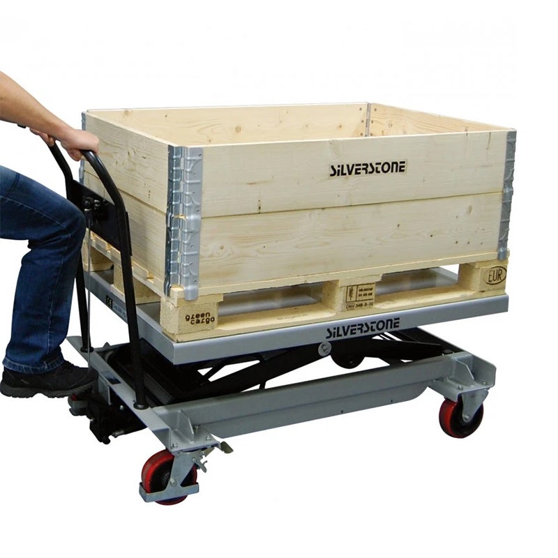 Hydraulisk lyftvagn som är ett lätt och smidigt lyfthjälpmedel på arbetsplatser där elanslutning inte finns tillgängligt.