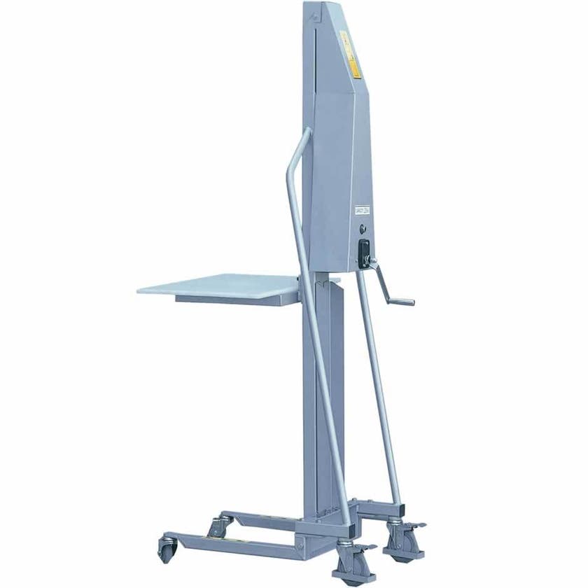Manövreras med en manuell handvinsch och stålwire, som ger en nogrann och snabb lyftrörelse. Automatiskt bromssystem ger en säker sänkning. Utrustad med långa handtag för enkel förflyttning. Försedd med 4 st länkhjul. Kan förses med flera olika praktiska tillbehör.