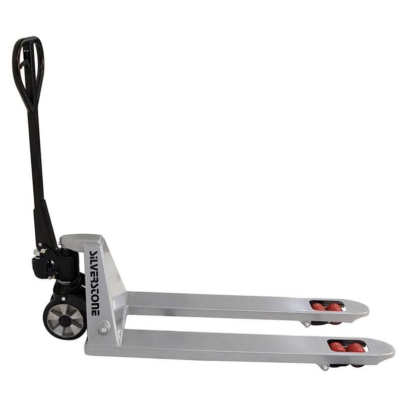 En populär och underhållsfri gaffellyftvagn där Du lyfter pallen redan på ett pumptag. Med 230° styrvinkel får Du en enkel hantering i trånga utrymmen. Kolvar, packningar och hydraulpaket av högsta kvalite. Hydraulsystemet är försett med överströmningsventil som garanterar att överbelastning inte kan ske. Detta ger en lång livslängd och låga servicekostnader. Smörjfria lager och bussningar. Bredd över gafflar 540 mm, styrhjul 200x50 mm, gaffelhjul 80x65 mm. Gummihjul på styrhjul.