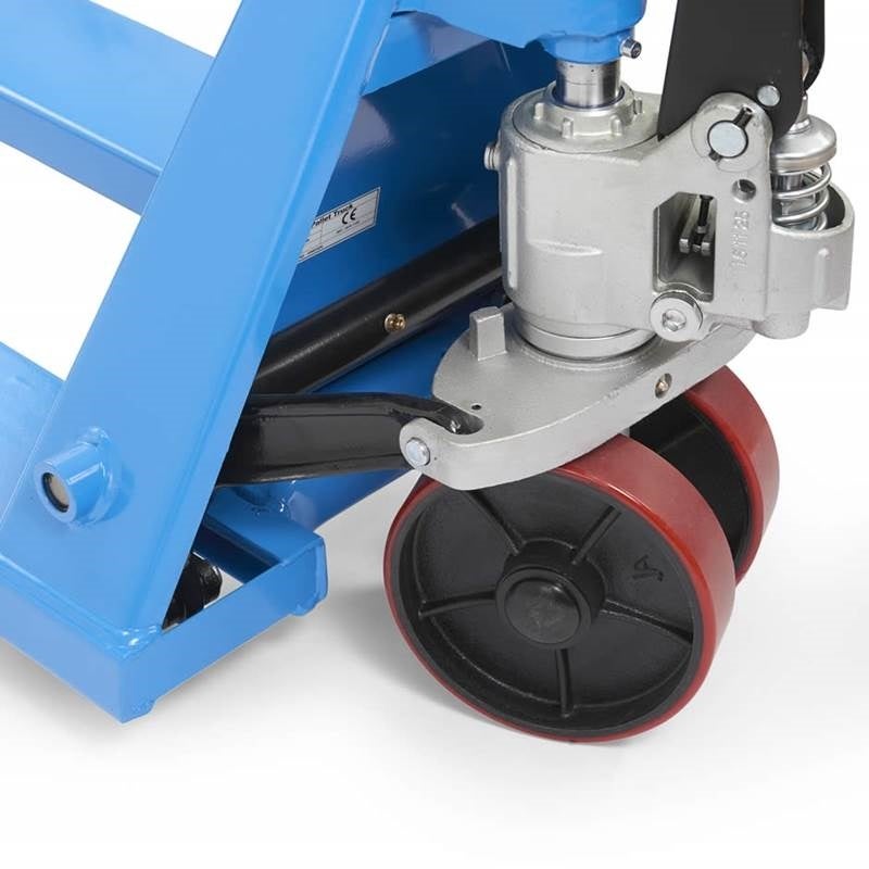 Hjul av polyuretan ger din Liftmate en mjuk och tyst gång och är samtidigt förlåtande mot spån, grus och annan smuts på golvet. Ett perfekt val vid ojämna underlag och på lastbilsflak. Boogiehjul polyuretan på gaffelhjulen ger en stabil gång vid tungt gods. Klätterhjulen på gaffelspetsen underlättar när pallar ska hanteras från långsidan.