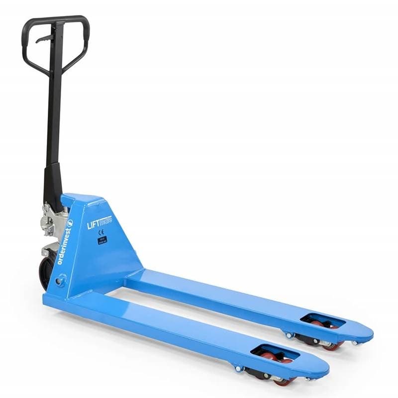 Med Liftmate har vi tagit fram en handtruck som redan i basutförande klarar att lyfta hela 2500 kg. Utrustad med en väl beprövad pumpenhet som gör pallyftaren till en pålitlig och slitstark medarbetare. Hela chassit är uppbyggt med rejäla förstärkningar som gör handtrucken stabil i alla lägen. Smörjnipplar på kritiska ställen som ger dig möjlighet att öka välmåendet på din Liftmate. Greppvänligt, gummerat handtag för maximal komfort.