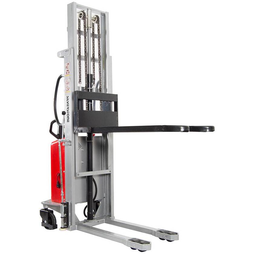 Semi-elektrisk staplare som innebär att Du har elektrisk lyftfunktion och manuell körning. Kompakt konstruktion, vilket ger en liten vändradie, perfekt för trånga utrymmen.