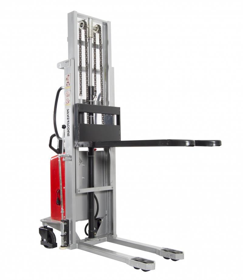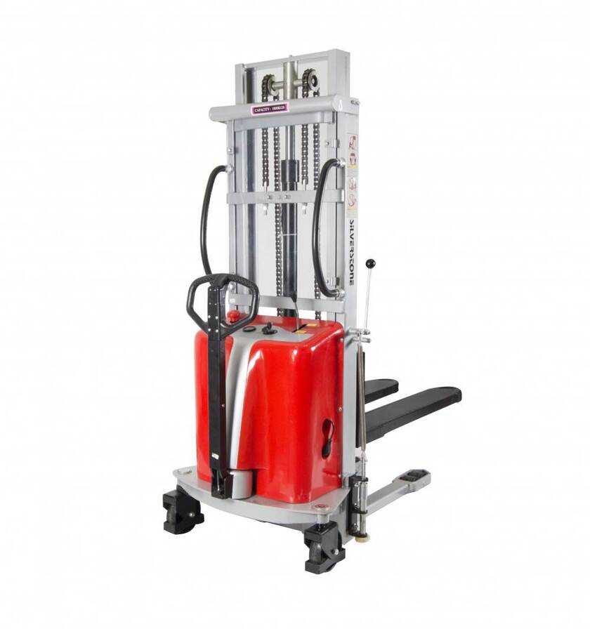 Semi-elektrisk staplare som innebär att Du har elektrisk lyftfunktion och manuell körning. 1000 kg lyftkapacitet. Ergonomiskt utformade handtag. Anpassad för intensiv hantering och kontinuerlig lyftning. Kompakt konstruktion, vilket ger en liten vändradie. Snabba lyft- och sänkhastigheter. Lätt och mjuk styrning gör staplaren smidig och säker att använda. Inbyggd laddare. Servicevänlig montering av hydraulik, elcentral och batteri. Stort batteri för många driftstimmar per laddning.